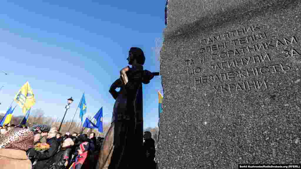 25 лютого на території Національного історико-меморіального заповідника «Бабин Яр» у Києві відбулося відкриття пам’ятника визначній діячці національно-визвольного руху, поетесі Олені Телізі. Як передає кореспондент Радіо Свобода, участь у заході взяли представники громадськості, молодь, чиновники та духовенство.