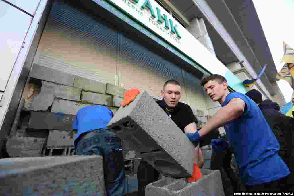 Активісти з прапорами політичної партії «Національний корпус» та «Правого сектору» пікетували головний офіс «Сбербанку» у центрі Києва. Вони замурували центральний вхід до фінустанови бетонними блоками. Минулого тижня «Сбербанк Росії» повідомив, що «готовий до обслуговування осіб, які звернулися з «паспортами» «ДНР» і «ЛНР», у всіх філіях банку». Пізніше агенція «Інтерфакс-Україна» повідомила, що дочірній банк «Сбербанку Росії» в Україні – ПАТ «Сбербанк» – не обслуговує фізичних і юридичних осіб на підставі документів, виданих на непідконтрольних українській владі територіях.