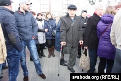 Обурений 60-річний мешканець міста Пінська, що на Берестейщині, прийшов на марш протесту на одній нозі.
