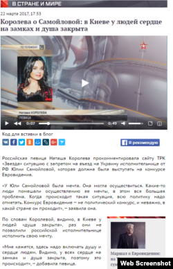 В МЗС Росії заявили, що «нинішня українська влада вкотре підтвердила свій образ режиму, зараженого русофобською параноєю і націоналістичними комплексами», заборонивши по лінії СБУ в’їзд в Україну представниці від Росії на «Євробачення-2017» Юлії Самойловій. В Росії також закликали бойкотувати «Євробачення-2017».