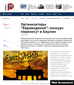 Російські ЗМІ масово повідомили про перенесення пісенного конкурсу «Євробачення-2017» із Києва у Берлін. За словами ЗМІ Росії, це випливає з начебто розмови двох російських пранкерів та генерального директора EBU (Європейської мовної спілки) Інгрід Делтенре. У самій EBU заперечили, таку інформацію і наголосили: конкурс відбудеться у Києві.