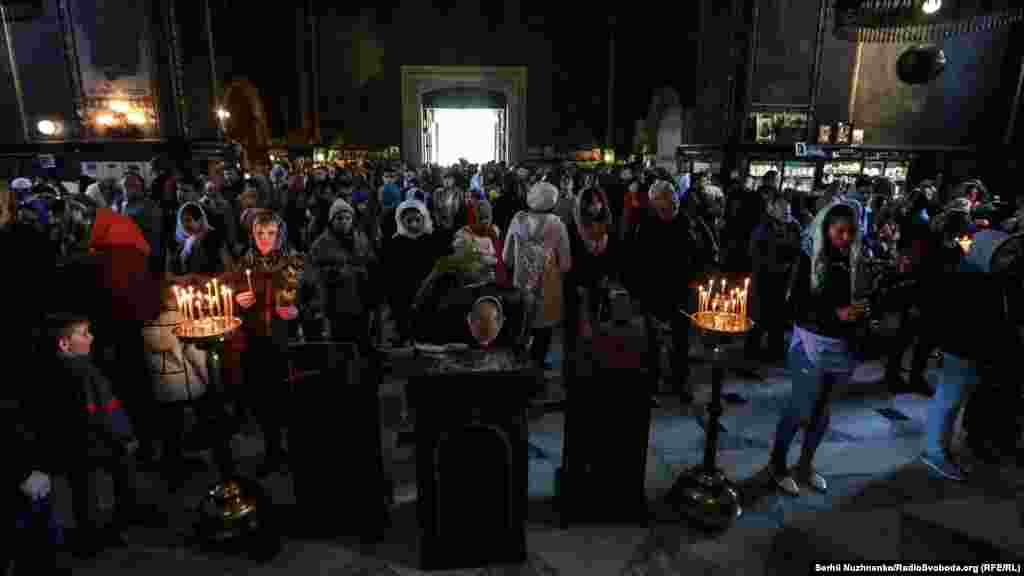Кияни та гості столиці зібрались біля Володимирського собору, аби освятити вербу та помолитися.