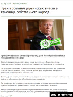«Виступаючи у Вашингтоні перед представниками «Ділового круглого столу», президент США звинуватив владу України в розв'язанні геноциду проти власного народу» – передає американська радіостанція CNN», – повідомили 9 квітня на сайті politnews4.tk