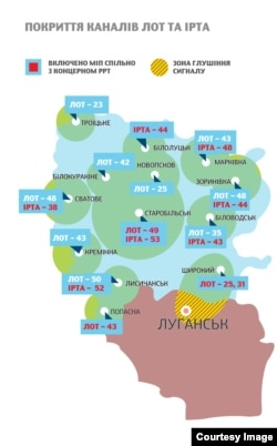 У Луганській області було додатково встановлено: 3 передавачі для телеканалу ЛОТ, 7 передавачів для телеканалу ТРК «ІРТА». Загалом 10 передавачів.