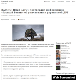 Сайт «Русская весна» вийшов із заголовком: «ВАЖЛИВО: Штаб АТО підтвердив інформацію «Русской весны» про знищення української ДРГ».