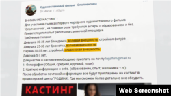 Потрапити на кастинг фільму «Ополченочка» може будь-хто – головне, щоб параметри підходили. Від майбутніх «танкісток» вимагають зовнішність «вольову», а ось від хлопців – обов’язково «слов’янську».