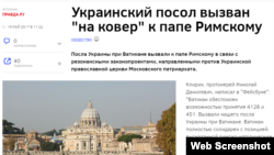 Низка інтернет-видань і ЗМІ повідомила що начебто посла України при Ватикані викликали до папи Римського для обговорення так званих «церковних законів». Однак, у МЗС України це заперечують.