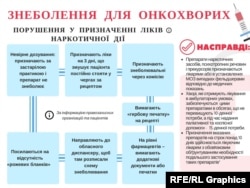 Це не правда, стверджує Ксенія Шаповал, менеджер програмної ініціативи «Громадське здоров'я» від фонду «Відродження». Вона зазначає, що проблема знеболення онкохворих, які перебувають вдома, пов’язана із хибною практикою призначень. Адже на законодавчому рівні ці правила чітко врегульовані і були значно полегшені у 2013 році.