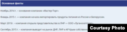 Донецкая компания «Мастер-торг» является крупнейшим дистрибьютором продуктов питания в «ДНР» и «ЛНР», а также поставляет продукцию своих торговых марок в оккупированный Россией украинский Крым. С Беларусью фирма работает с начала 2015 года – об этом сообщается на их сайте.