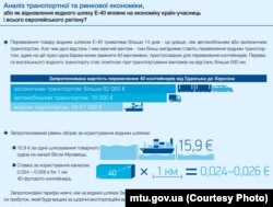 Проект Е40 за того вантажообігу, що є зараз, невиправданий і не окупиться, вважає колишній міністр транспорту України Йосип Вінський. З Білорусі раніше перевозили річкою мінеральні добрива до порту в Миколаєві, каже екс-міністр, тож можливе відновлення цієї співпраці, але цього вантажообігу занадто мало, аби вкладати великі кошти у відновлення шляху.