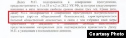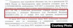 «Дадеу М. П. підозрюється в здійсненні злочину екстремістського характеру, який характеризується значною громадською небезпекою», – зазначено у постанові «Октябрьського райсуду» Краснодару про обрання запобіжного заходу.