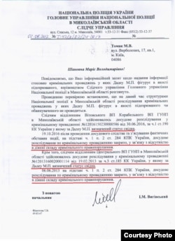 «Медійна ініціатива за права людини» звернулася із відповідним запитом до поліції Миколаївщини. Виявилося, що вищезгадане провадження було закрите ще у жовтні 2016 року «у зв’язку з відсутністю в діянні кримінального правопорушення». Що є особливо цікавим – у цій справі Миколі Дадеу був наданий статус свідка.