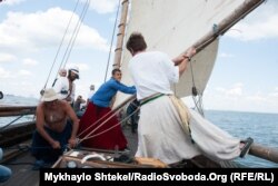 «Нас запросили на регату, щоб, так би мовити, передати естафету з минулого в сучасне. Показати, як це було колись і до чого ми дійшли тепер, які прекрасні сучасні яхти. В Запоріжжі була така нагода – ми проходили повз міста і нас також попросили дати старт. Щось подібне було у Франції – також нас запросили», – розповідає Гуменецький.