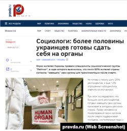Деякі російські видання повідомили, що понад 50% українців готові продати або ж віддати себе на органи. У дослідженні, на яке послались у медіа, насправді, йшлось про підтримку права людини на пожертву своїх органів після смерті, щоб врятувати або покращити життя інших людей в Україні.