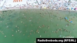 На невеличкому пляжі по сусідству ж, ніби на вільній від шезлонгів зоні, – сотні людей.