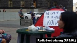 Поначалу Юле полиция не давала установить палатку, говорит она, «мотивируя тем, что это – малая архитектурная форма». Но вмешались депутаты, и палатку установили. Возле нее постоянно дежурят и другие переселенцы. Татьяна Катковская из Алчевска Луганской области рассказывает, что работает с мужем без выходных, но собрать деньги на жилье все равно нереально.