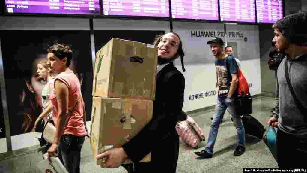Фотокореспондент Радіо Свобода зустрів хасидів-паломників у міжнародному аеропорті «Бориспіль».