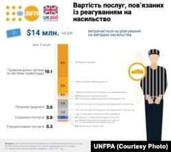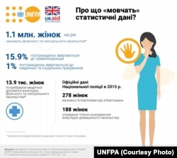 Від насильства (фізичного та сексуального) страждають 1,1 мільйона жінок на рік, згідно із дослідженням UNFPA. Це обходиться українському суспільству, за підрахунком аналітиків, у 208 мільйонів доларів (0,23% ВВП країни у 2015 році).