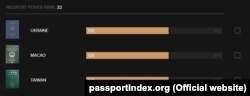 У глобальному індексі паспортів Україна розмістилась на 32-му місці разом з Макао і Тайванем – їхні документи дозволяють безвізовий в’їзд у 120 країн.