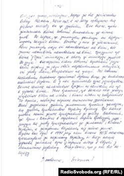 Однак, залишаючись патріотом своєї Батьківщини, я відмовлявся від цих пропозицій. Тоді «Хмурий» вдався до практики моєї компрометації та відсікання можливості мого повернення. Все, що зараз СБУ намагається представити як докази у моїй справі, то є у більшості заходи, які повинні були мене дискредитувати. Зараз, сидячи у тюрмі, я не змінив своїх переконань. Навіть у найгіршому випадку, якщо суд прийме рішення про моє ув’язнення, все одно, я думаю, що краще бути в буцигарні, ніж воювати зі своїм народом.