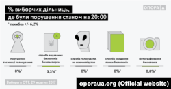 Представники політичних партій та спостерігачі також повідомляли про порушення. Скажімо, спостерігачі від партії «Самопоміч» повідомили, що на виборчій дільниці в селі Білозерка Херсонської області на урнах бракувало пломб.