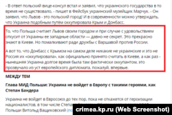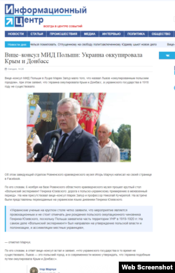 У вівторок історик, завідувач відділу Рівненського обласного краєзнавчого музею Ігор Марчук написав на своїй сторінці в Facebook, що віце-консул генерального консульства Польщі в Луцьку зробив «провокаційну антиукраїнську заяву»: назвав Львів польським містом і сказав, що Україна окупувала Крим і Донбас. Зі свого боку, Марек Запур каже, що слова, які йому приписують, «вирвано з контексту і перекручено».