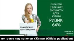 Але навіть попри таку акцію, громадськість програє у рекламній присутності елементарному – вітринам кіосків. Понад три тисячі київських кіосків (активісти виявили, зокрема, 376 поруч із 102 школами) корпорації перетворили в яскраво освітлені рекламні щити. А попередження, розміщені на пачках, «сумлінні» продавці старанно заклеюють цінниками. Врешті 23 гривні звучить не так страшно як «рак легень».