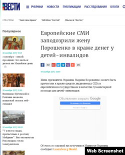 Тиждень тому цей же ресурс Luxembourg Herald поширив допис про дружину президента України Марину Порошенко. Той допис стверджував, що вона може бути причетна до крадіжки коштів, що виділяються США і європейськими державами як гуманітарна допомога для дітей-інвалідів. Таку інформацію начебто надало джерело у Міністерстві юстиції України. Це передрукували російські і деякі українські видання.