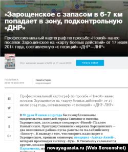 Про те, що Зарощенське перебувало під контролем угруповання «ДНР», також писало російське видання «Новая газета» у матеріалі «Зарощенське із запасом в 6–7 кілометрів потрапляє в зону, підконтрольну «ДНР».