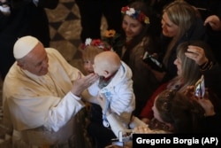 Заходячи до собору, папа Франциск не оминає малечі: торкається рукою їхнього чола, а найменших по-батьківськи обіймає і цілує.