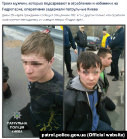 Йдеться про справу, коли двох хлопців 24 і 26 років побили у Гідропарку в Києві 29 травня 2017 року. Нападники – троє чоловіків. Один із хлопців встиг викликати поліцію. Патрульні приїхали швидко та затримали нападників на мосту через протоку Дніпра.
