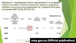 Мінсоцполітики навело кілька прикладів. Так, комбат ЗСУ, який вийшов на пенсію у 1990-х, отримуватиме цього року 4 793 гривень пенсії, а у 2020 році вона становитиме вже 6 657 гривень. На сто гривень більше отримає, наприклад, пенсіонер МВС, який пішов з посади у 2000 році у званні майора, наводять приклади у Мінсоцполітики.
