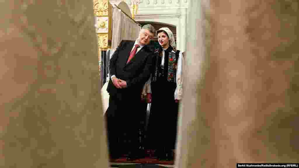 Хресна хода у Великодню ніч у Володимирському соборі з участю глави Української православної церкви Київського патріархату Філарета та президента України Петра Порошенка разом із сім’єю