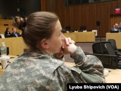 «Українські жінки змушені ставати снайперами, щоб захищати своїх дітей від російської агресії. Зараз вони знімають свої балаклави, щоб розповісти всьому світові правду про війну з Росією», – сказала в інтерв’ю «Голосу Америки» активіст української діаспори Люба Шипович, яка теж була присутня на засіданні.