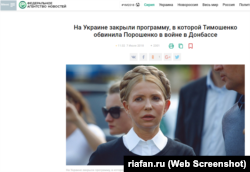 Видання «РИА-Фан» вийшло із заголовком (мовою оригіналу): «На Украине закрыли программу, в которой Тимошенко обвинила Порошенко в войне в Донбассе».