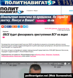 Сайт «Политнавигатор» повідомив, що Спеціальна моніторингова місія ОБСЄ в Україні встановить камери спостереження у районі населеного пункту Красногорівка, заголовок публікації: «ОБСЄ буде фіксувати злочини ВСУ на відео».