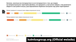 Економічна блокада зі збереженням гуманітарних відносин, пересуванням людей, виплатою пенсій, водопостачанням та енергопостачанням. Такі форми збереження зав’язків із мешканцями непідконтрольної території підтримують опитані українці. Крім того, громадяни України підтримують надання пільг для людей, що приїжджають з тимчасово окупованих територій на територію, що контролюється українським урядом, та пільги дітям з непідконтрольних територій для вступу до вищих навчальних закладів на вільній українській території. Такі дані дослідження, які провела компанія GfK Ukraine на замовлення об’єднання аналітиків «Кальміуська група».