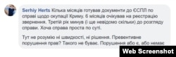 Непокоїть оперативність європейського суду у цій ситуації і користувача Сергія Герца. Він розповідає історію свого звернення до ЄСПЛ: каже, мало того, що у справі щодо окупації Криму шість місяців очікував лише на реєстрацію, так саме звернення ще й не можуть розглянути ось уже як три роки.