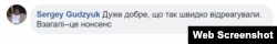 «Дуже добре, що так швидко відреагували. Взагалі – це нонсенс», – констатує користувач Сергій Ґудзик.