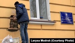 Після цієї статті пам’ятну дошку Володимиру Затонському оперативно демонтували, й це було зроблено в раках 24 годин після публікації. Ось як виглядав фасад будівлі Інституту філології КНУ імені Тараса Шевченка на ранок 23 листопада: