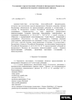 Договір про надання субсидії компанії «Грин Филмс» із федерального бюджету Росії на виробництво фільму «Вниз»