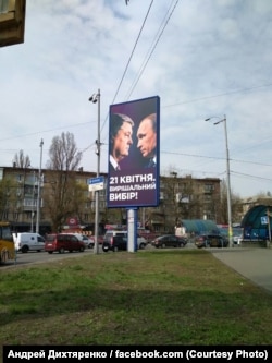 «21 квітня. Вирішальний вибір» – плакати із таким написом, а також зображеннями кандидата в президенти України Петра Порошенка навпроти президента Росії Володимира Путіна почали з'являтися на українських вулицях за менш ніж за два тижні до другого туру виборів і спричинили справжній скандал.