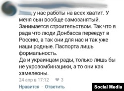 «У нас работы всем хватит. Я рада, что люди Донбасса переедут в Россию, а так они для нас и так уже наши родные. Паспорта лишь формальность. Да и украинцам рады, только лишь бы не укрозомобнацики, а то они как хамелеоны», – прокомментировали в интернете.