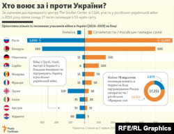 Згідно з цією інфографікою, найбільше білорусів билися на боці підтримуваних Росією сепаратистів / російських гібридних сил.