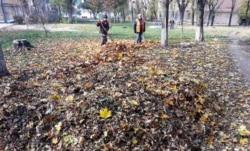 «Сначала эти листья граблями собираем в кучи, затем грузим на трактор, и он увозит это все. Высыпают за пределами города. Там есть специальные места для этого. Очень много листьев собираем. За день 3 прицепа тракторных могу нагрузить», – говорит дворник Василий Парапир.