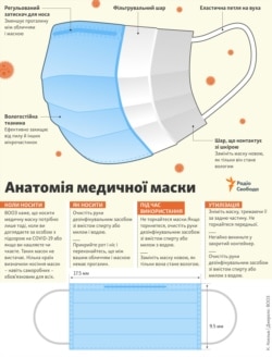 • не торкайтеся маски під час використання; якщо ж доторкнулися, обробіть руки спиртовмісними продуктами або помийте їх із милом;