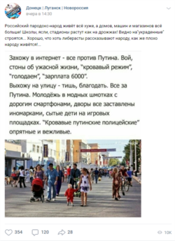 Попадается в пабликах для оккупированных территорий и чистая дезинформация на теме Хабаровска, например, такой заголовок: «У организаторов митинга закончились деньги: поддержать Фургала никто не пришел».
