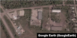 Ось воно влітку 2013 року, до війни. Видно, що огороджений майданчик та будівлі біля нього використовуються як база для вантажних автомобілів та фур: