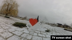 Із самого верху – знову поховання. На могилах надписи – батальон «Восток». «Восток» – це збройне формування бойовиків російських гібридних сил. Ватажок – Олександр Ходаковський, колишній командир спецпідрозділу «Альфа» Управління СБУ Донецької області, який перейщов на бік російсько-гібридних сил. Цей батальйон був створений на початку травня 2014 року.