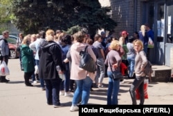 «Маріуполь був казкою, це відбувалося на моїх очах. Місто було зеленим, облаштованим. Скільки дитячих майданчиків, зупинки, озеленення. Навіть люди почали змінюватися на краще, світлішати… Коли я побачила найсвіжіші фотографії, «азовці» зробили, – місто не впізнати… Житло тут у мене безкоштовне, тільки комуналку сплачую. Сюди я приїхала в усьому зимовому, а тепер проблема – весняний одяг. Треба буде щось підібрати. Надія на те, що війна скінчиться й Україна об’єднається. Тоді я зможу повернутися і до себе, в Донецьк», – сказала Радіо Свобода Валентина, чекаючи своєї черги.